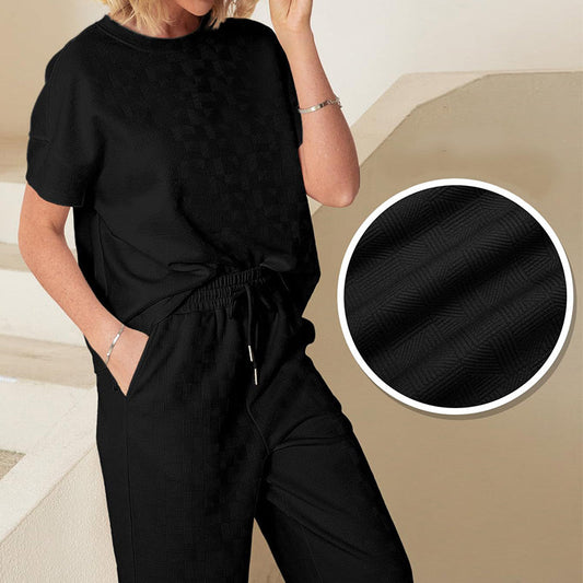 HOT SALE🔥Women's Textured Loose Fit T Shirt and Drawstring Pants Casual Set