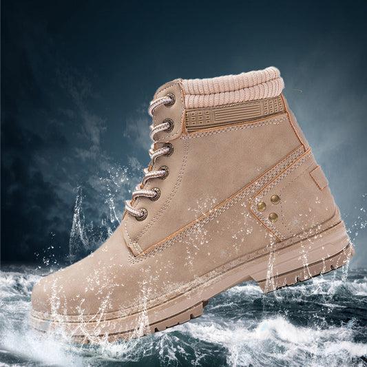 Ideal Gift - Women's Work Waterproof Hiking Combat Lace up Low Heel Ankle Boots