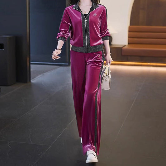 Women's Velvet-Like Contrast Color 2-PieceTracksuit