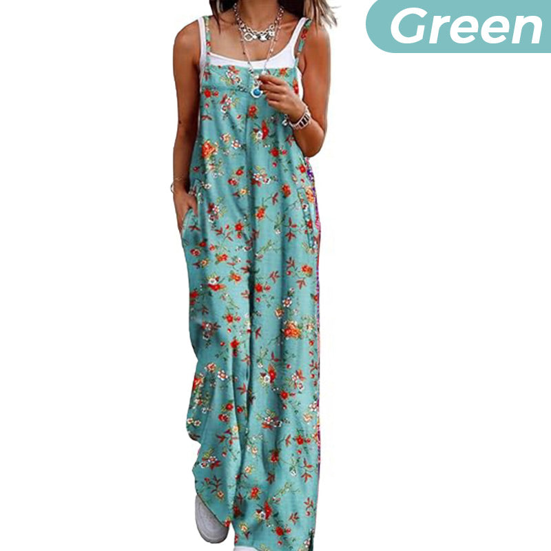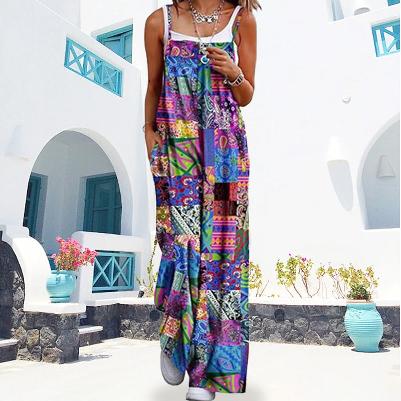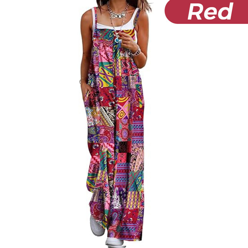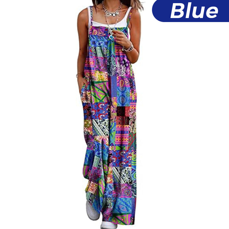 The wide-leg design offers a relaxed and flowy silhouette, while the convenient pockets add functionality. Whether you're headed to a beach vacation, a music festival, or a casual day out, this jumpsuit is the perfect choice for effortless style. Embrace the bohemian spirit with our Women's Summer Bohemian Wide Leg Jumpsuit with Pockets.