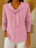 Women's solid-color sweater with ties and long sleeves, casual and loose