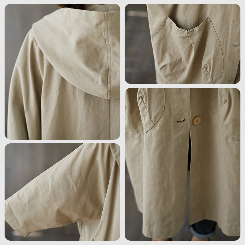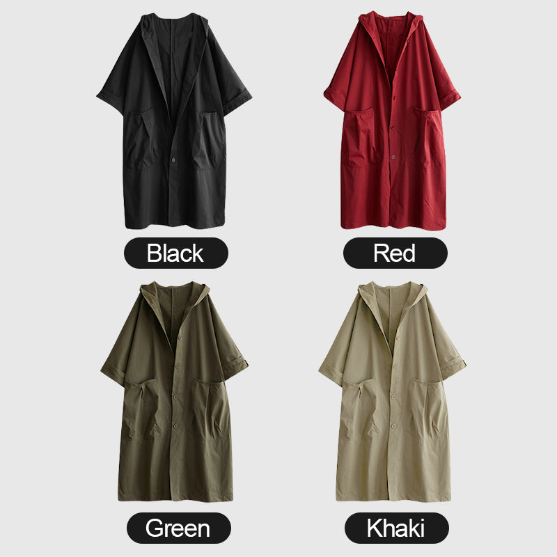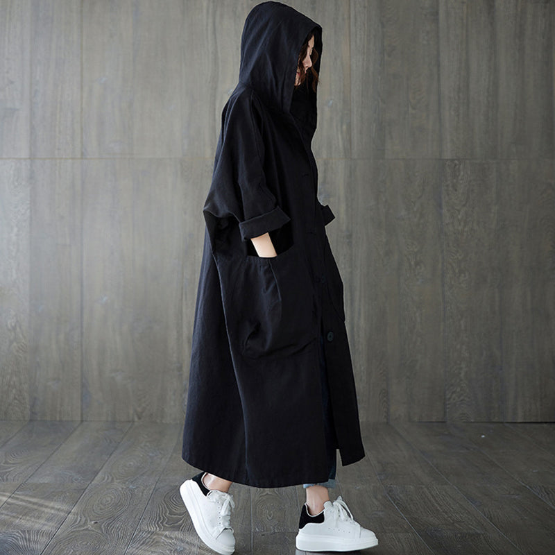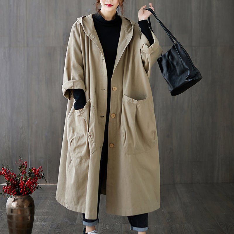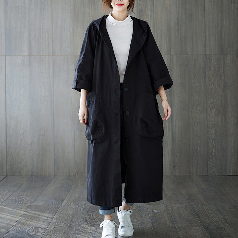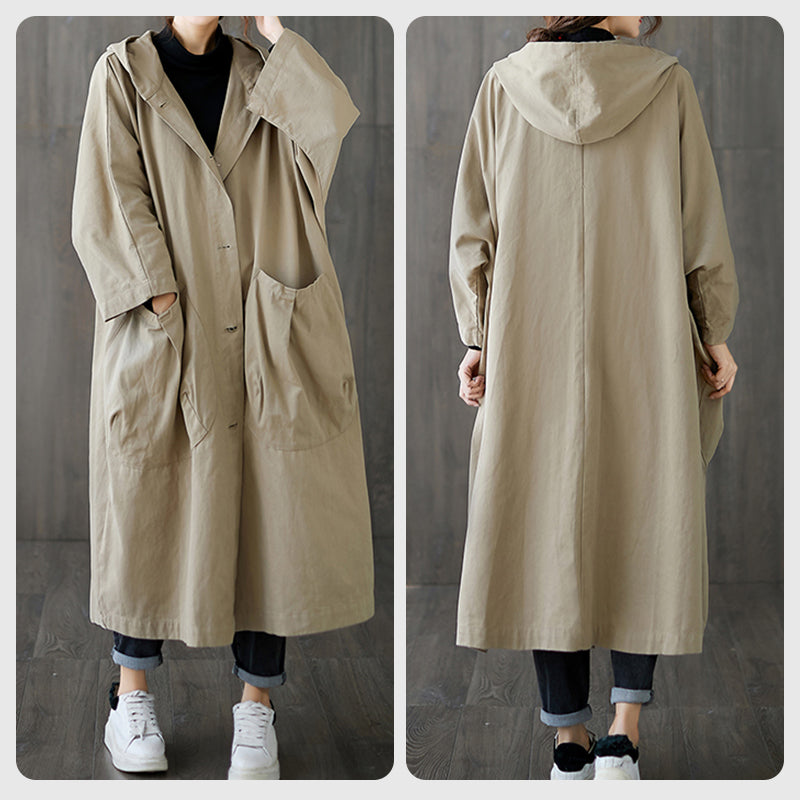 Step out in style and stay warm this season with an Oversized Large Pocket Hooded Long Trench Coat. Featuring two large and deep side pockets, a modern hooded design, wide and comfortable sleeves, and a button-down closure, this coat is perfect for any occasion. Keep your hands warm and your style on-trend with this must-have piece.