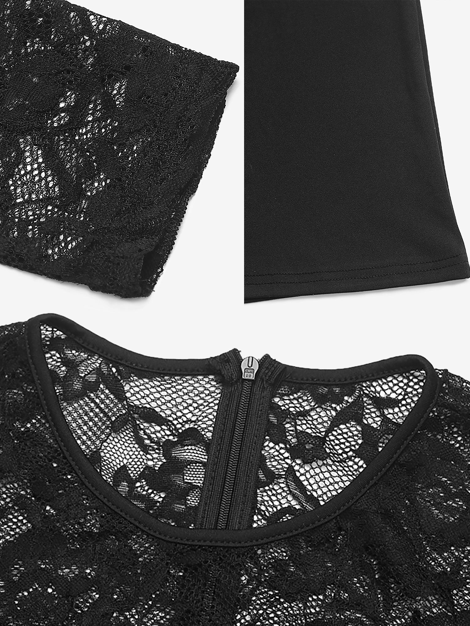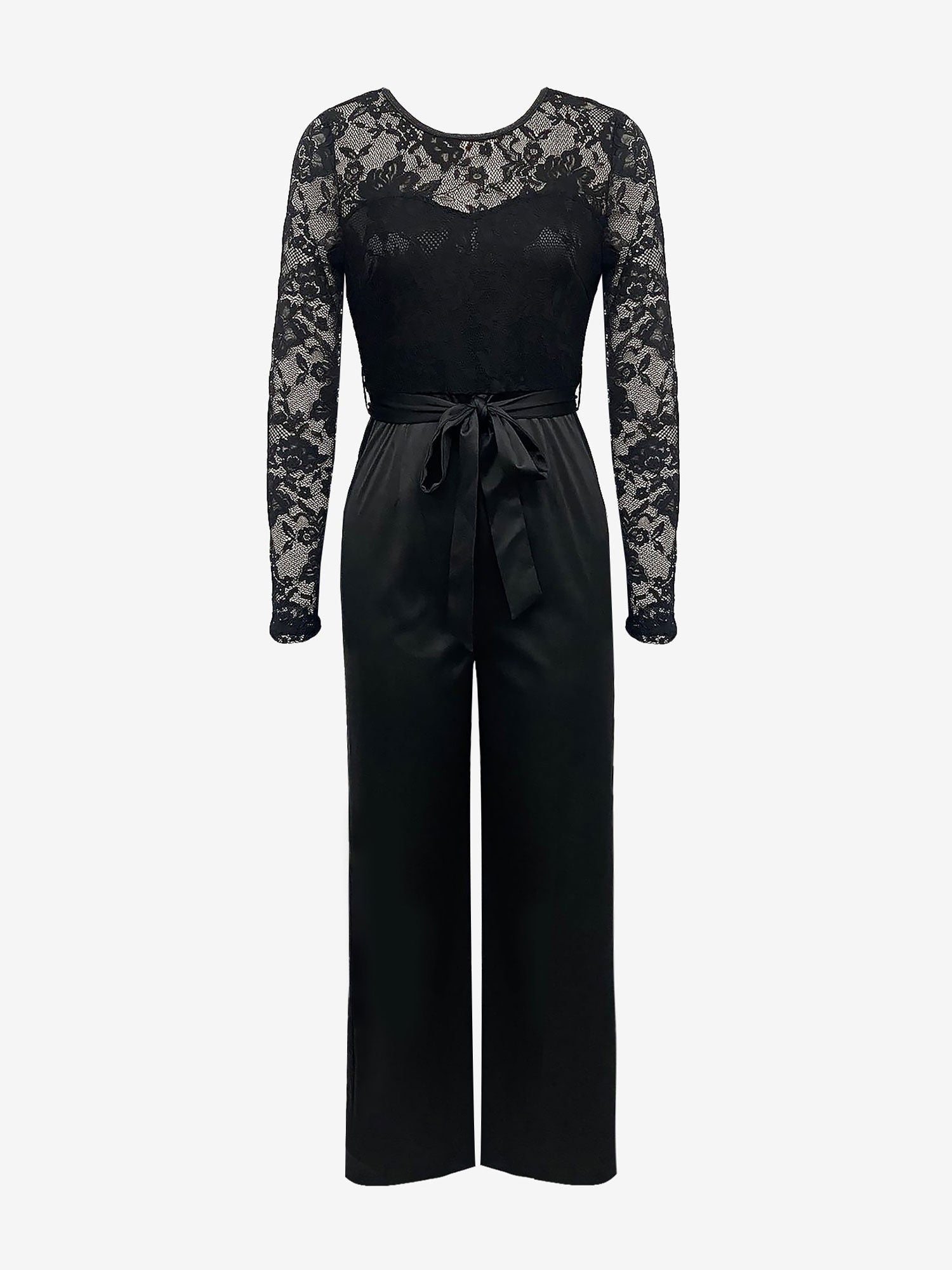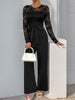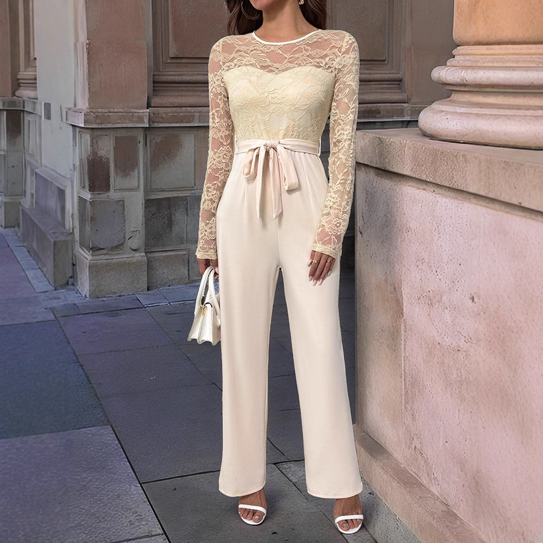 Elegant Vintage-Inspired One-Piece Lace Patchwork Solid Color Tie Waist Jumpsuits