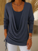 Women's long-sleeved blouse with a swing collar in a solid color, imitating a two-piece set