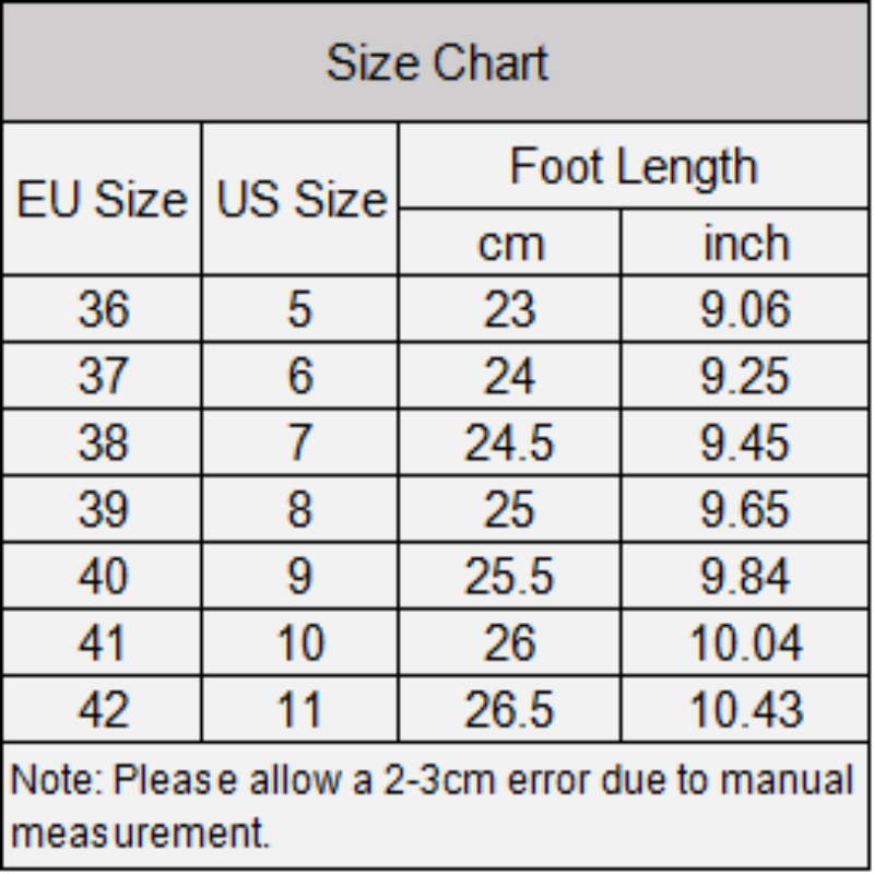Size: 36, 37, 38, 39, 40, 41, 42