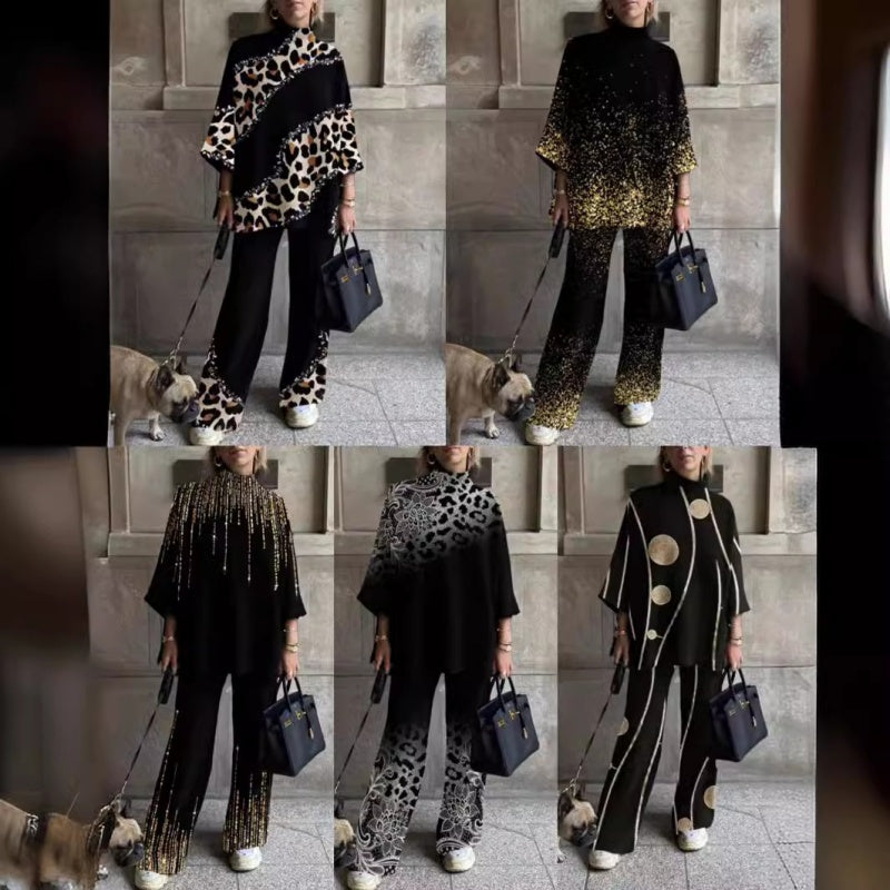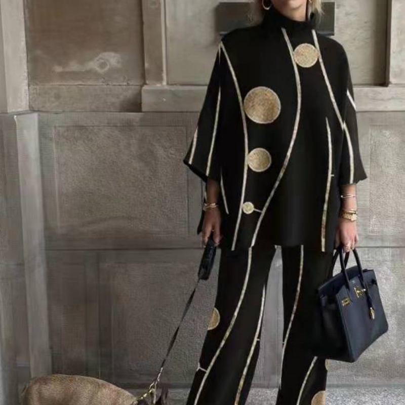 SOPHISTICATED DESIGN: The set features a high neck printed top with elegant three-quarter sleeves, paired with matching loose pants for a well-coordinated and polished outfit. Perfect for creating an effortlessly chic style with minimal effort.