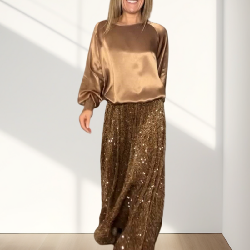 Women's Long Sleeve Top & Sequin Maxi Skirt Two-Piece Set