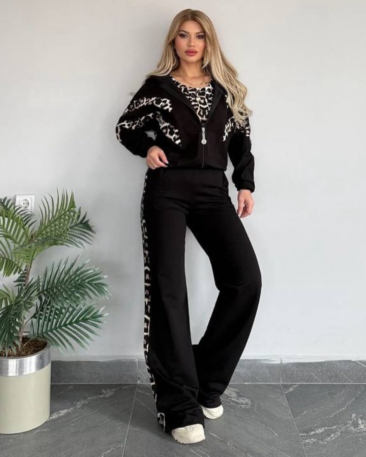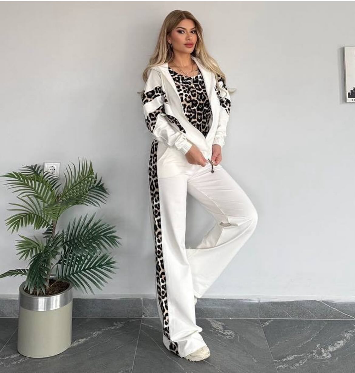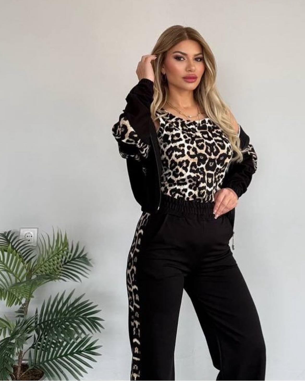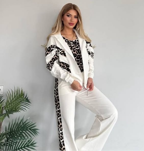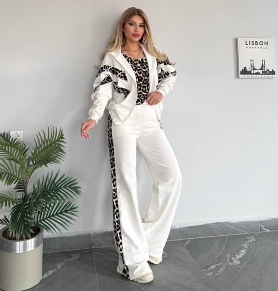 Chic Leopard Print Stripe Tracksuit Set - Comfy & Stylish for Daily Look