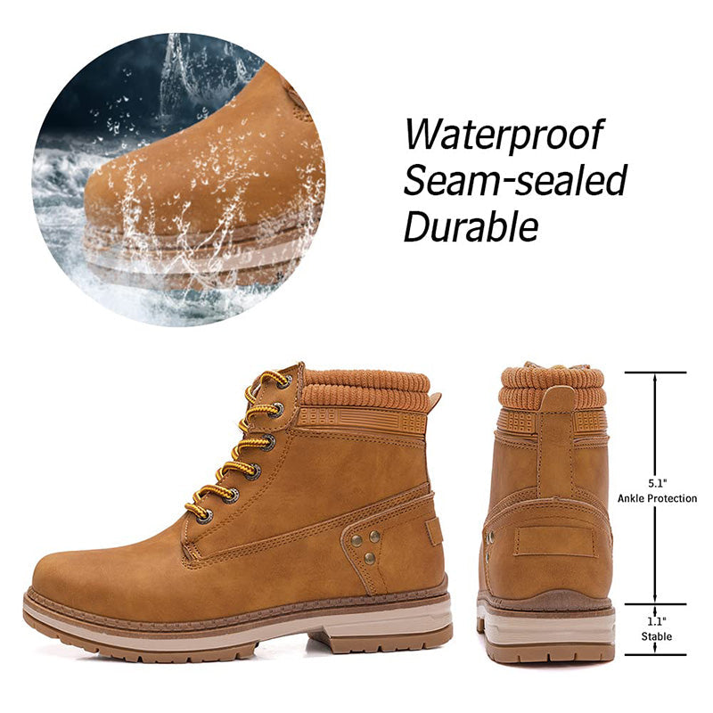 HIGH QUALITY: Move easily from urban to wilderness, the lace up hiking boots improved with durable waterproof leather, comfy padded collar, and metal eyelet create an eye catching effect.